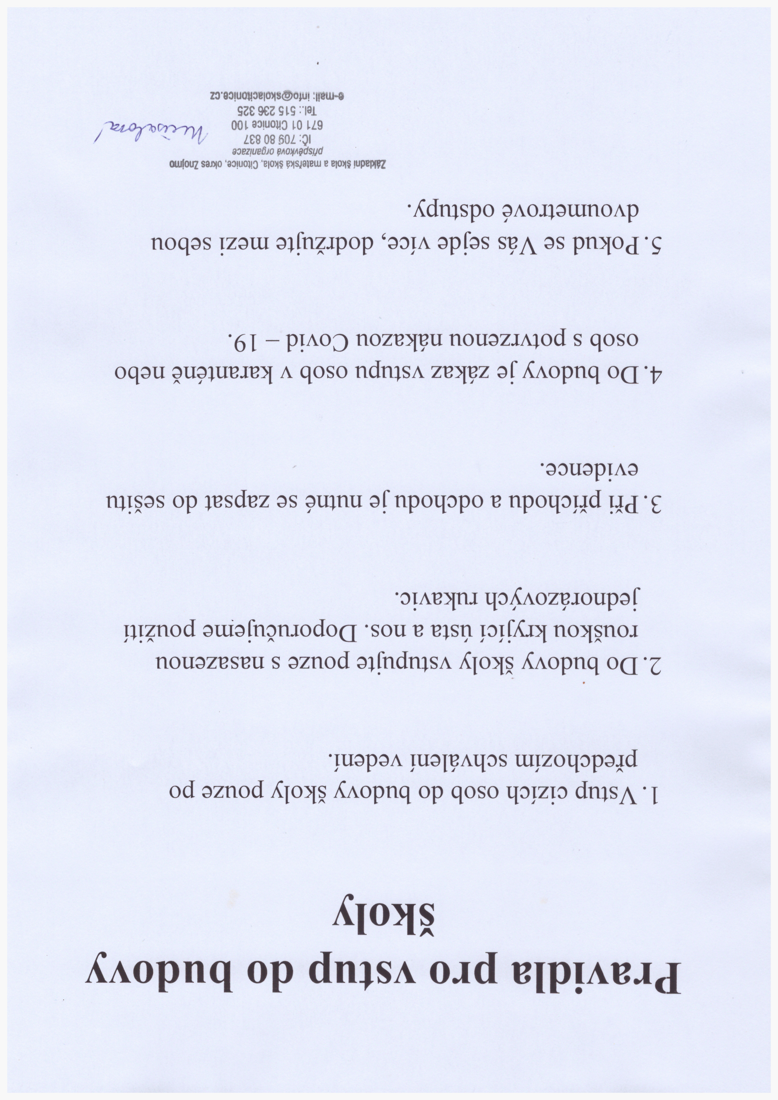 Prosím, dodržujte pravidla vstupu do budovy viz. níže.