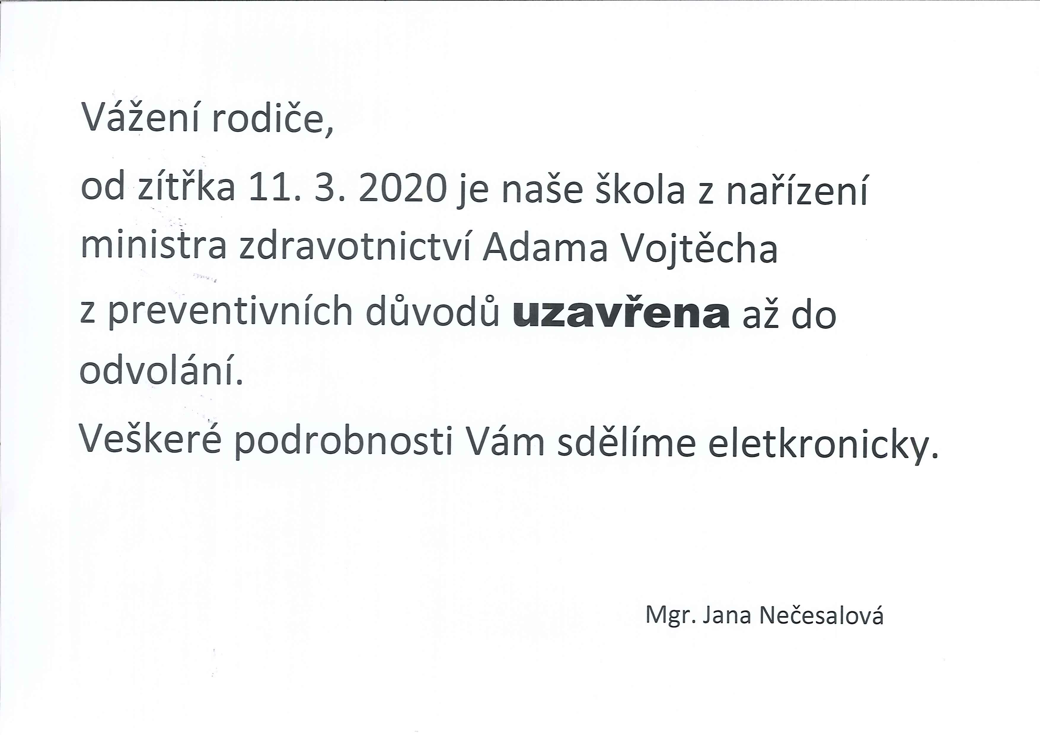 Uzavření ZŠ