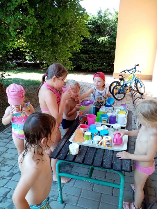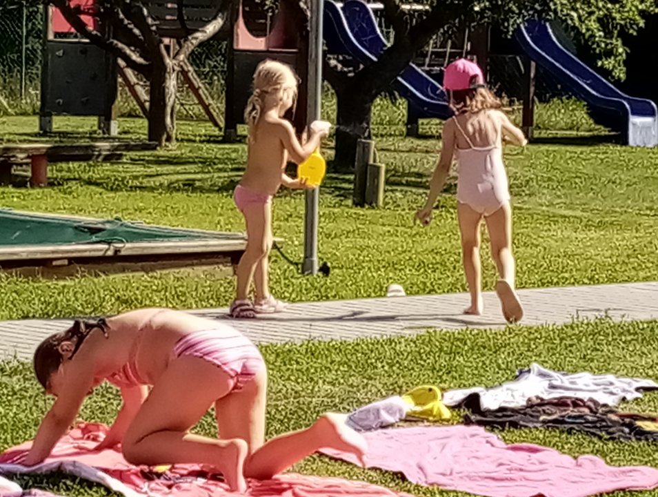 "Děti oblékneme si plavky." "Huráá, jééé", jekot - upřímné nadšení. Radujeme se.