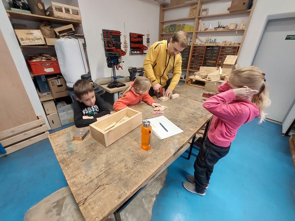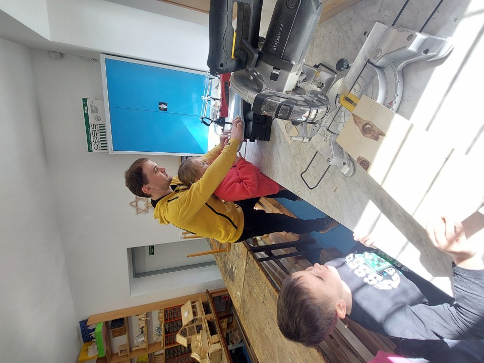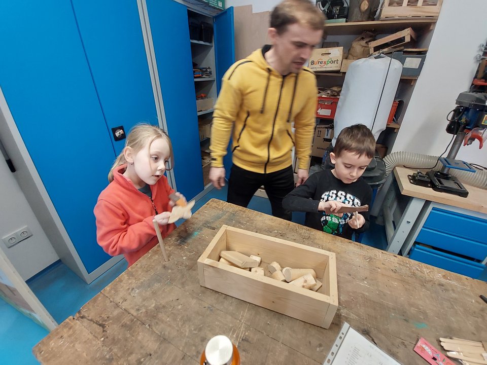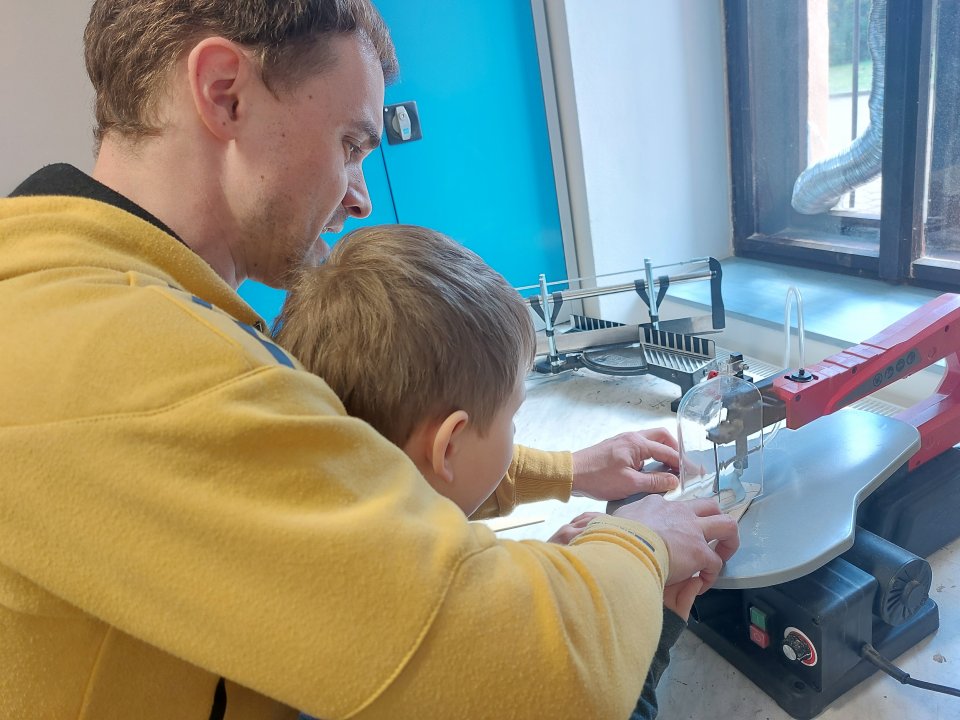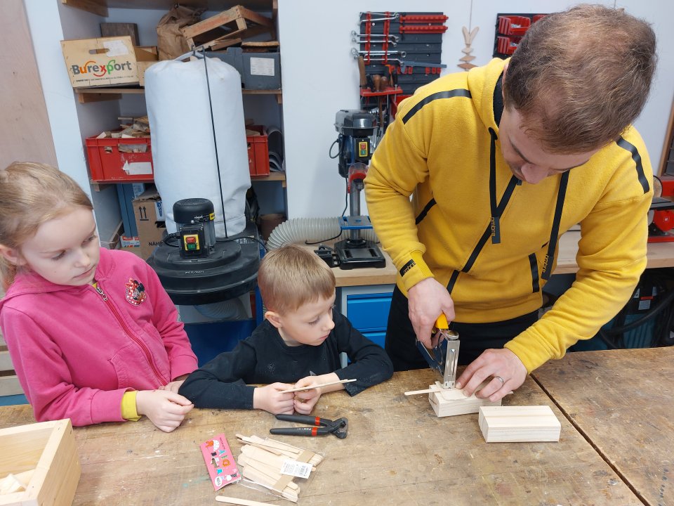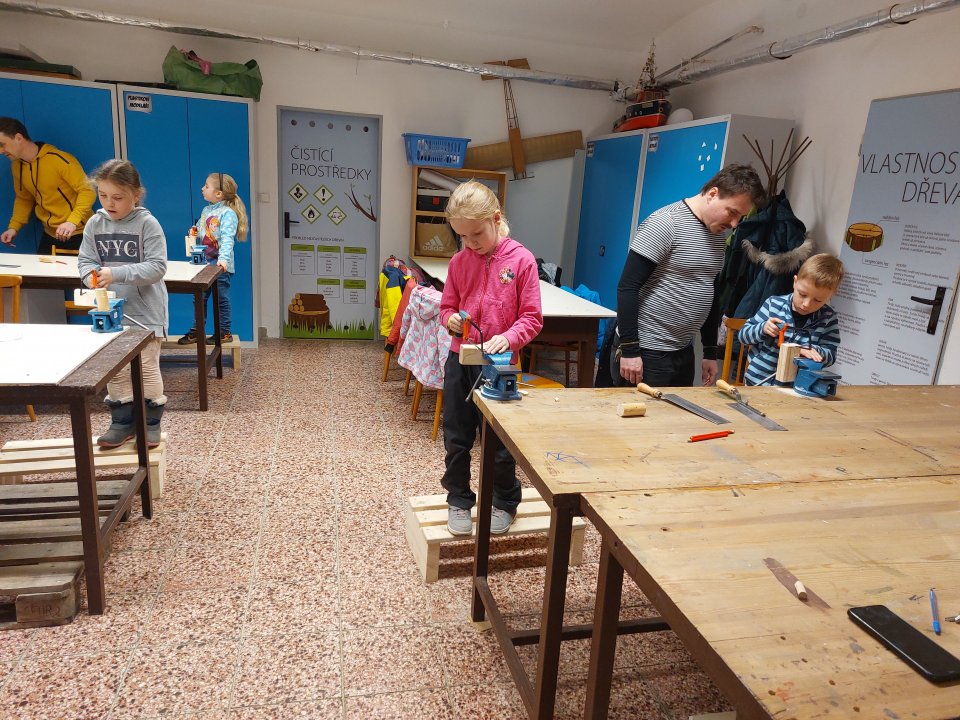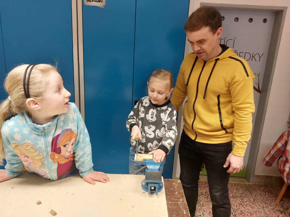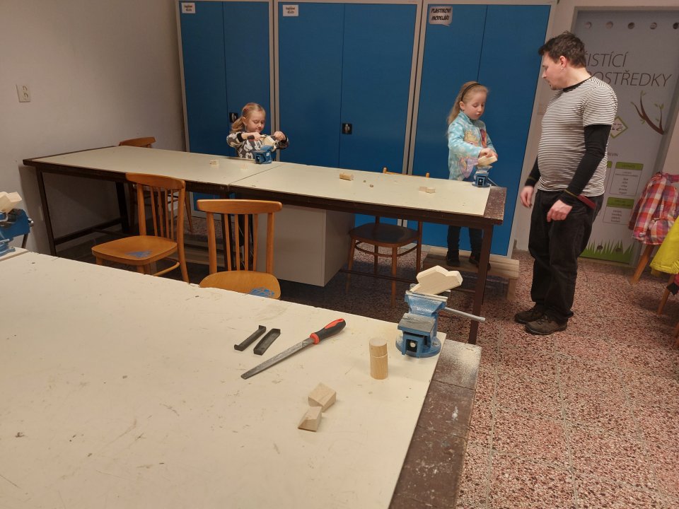 Vyrábíme auto - pracujeme se svěrákem, používáme různé pilky, rašple a pilníky.