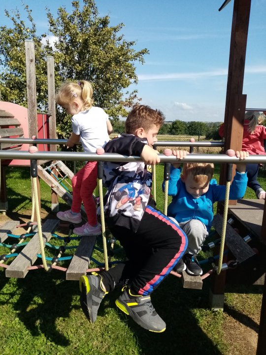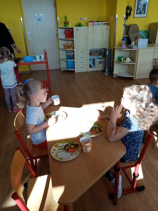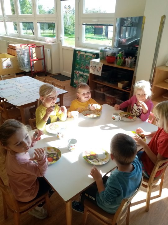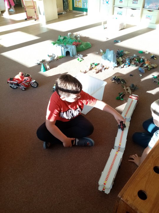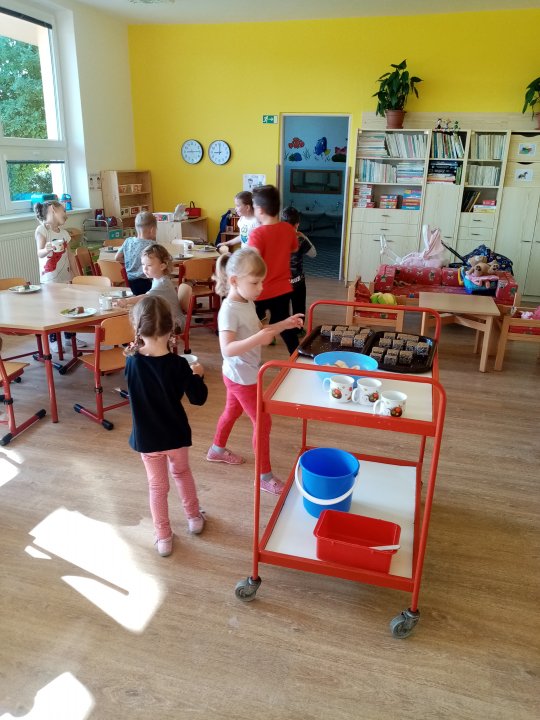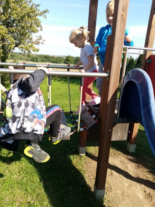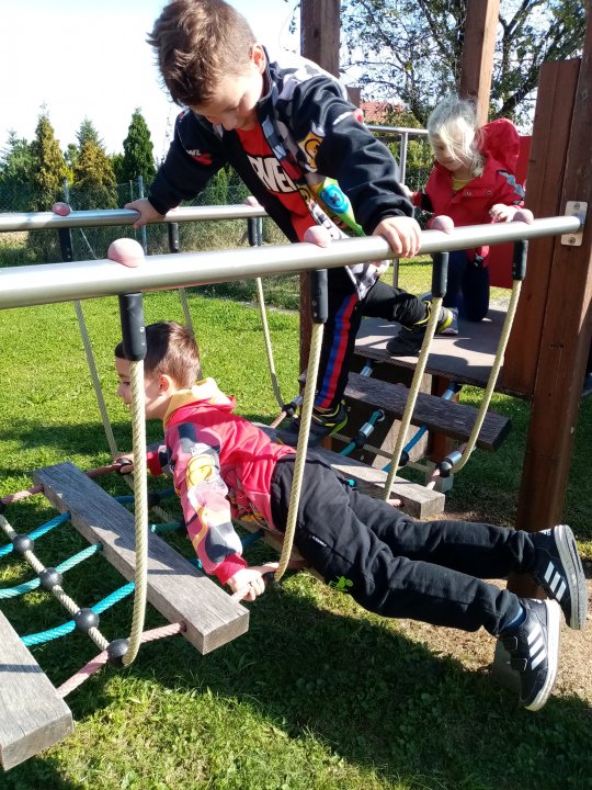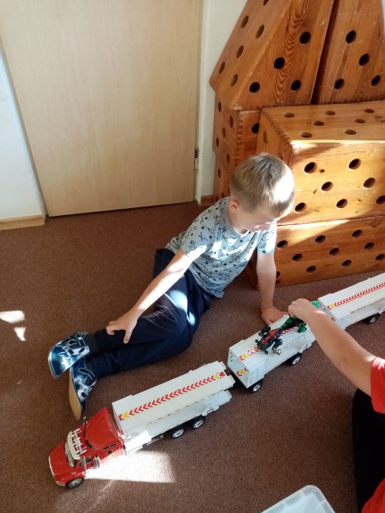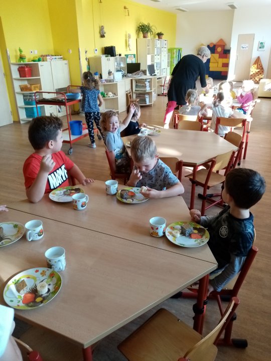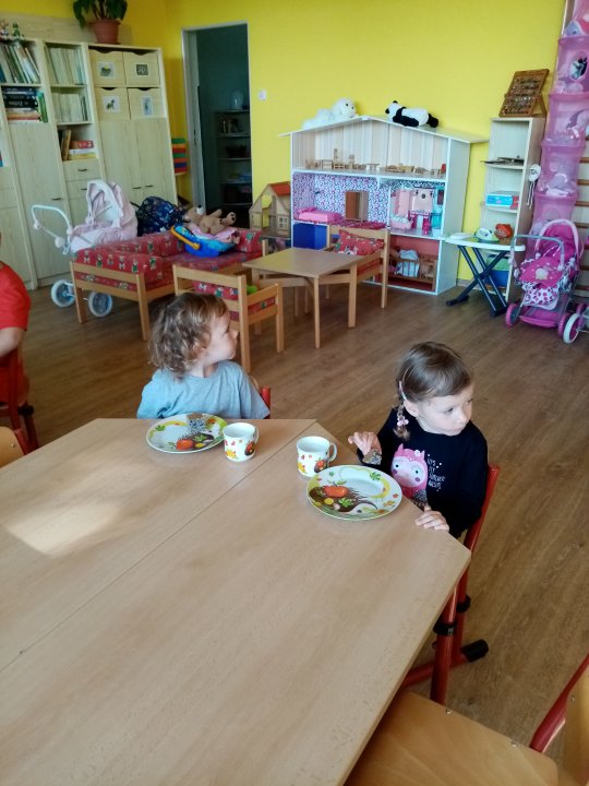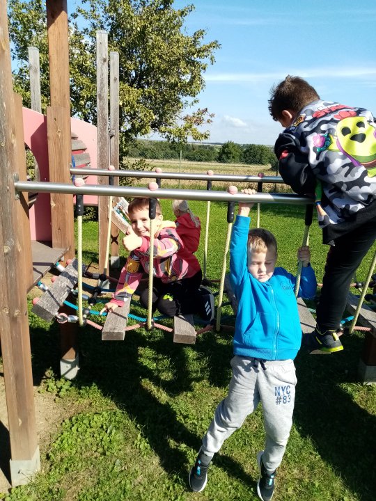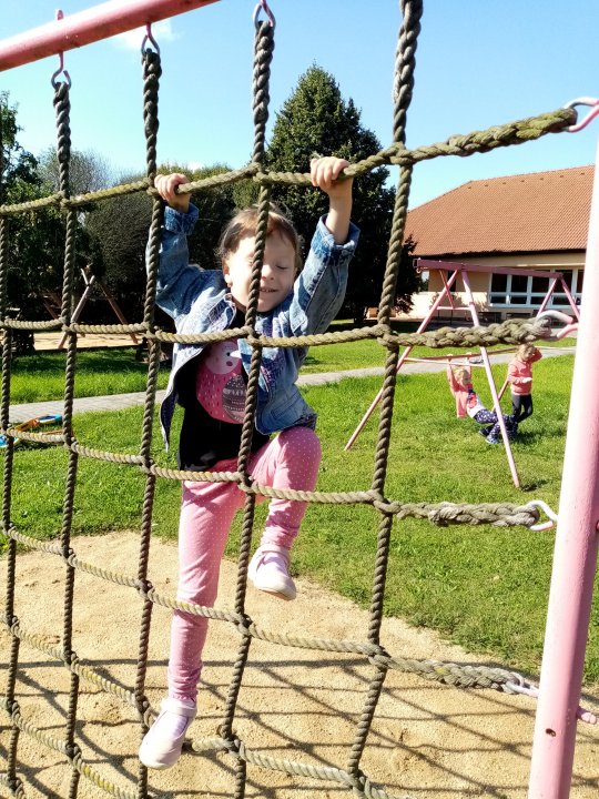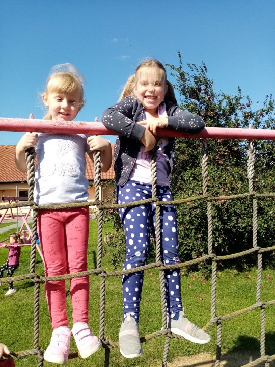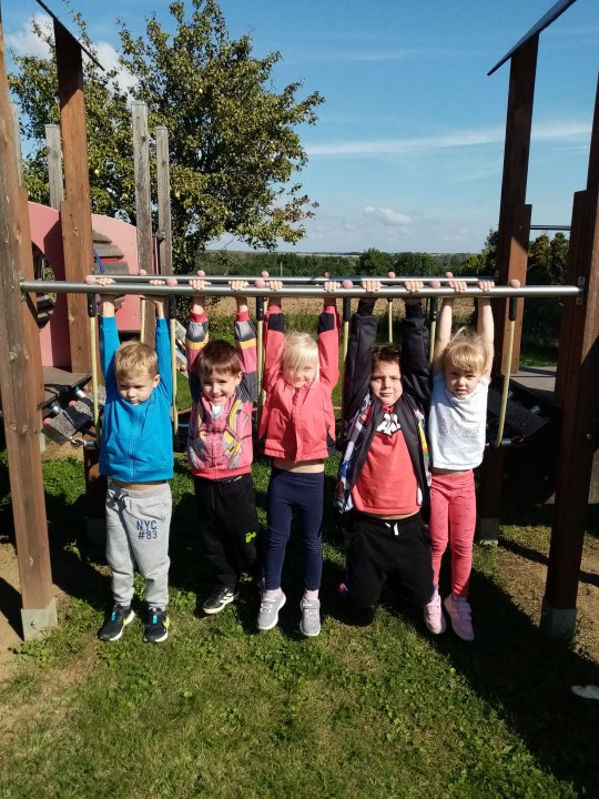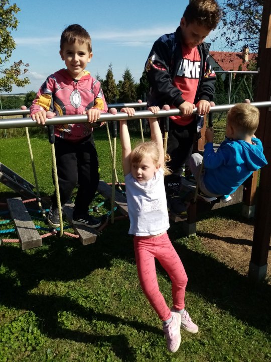 Seznamujeme se navzájem, poznáváme nové prostředí a nastavujeme pravidla. Užili jsme si pohodový den. Děti si pohrály dle vastní volby ve třídě, trošku jsme si zazpívali, pracovali jsme na pamětním listě a hlavně jsme si užili sluníčko a průlezky na zahradě MŠ.