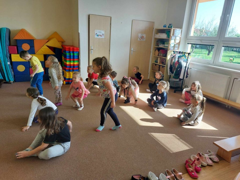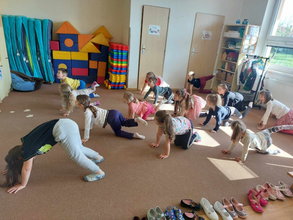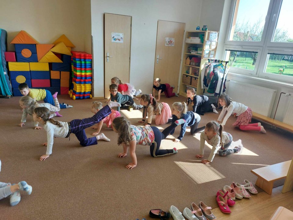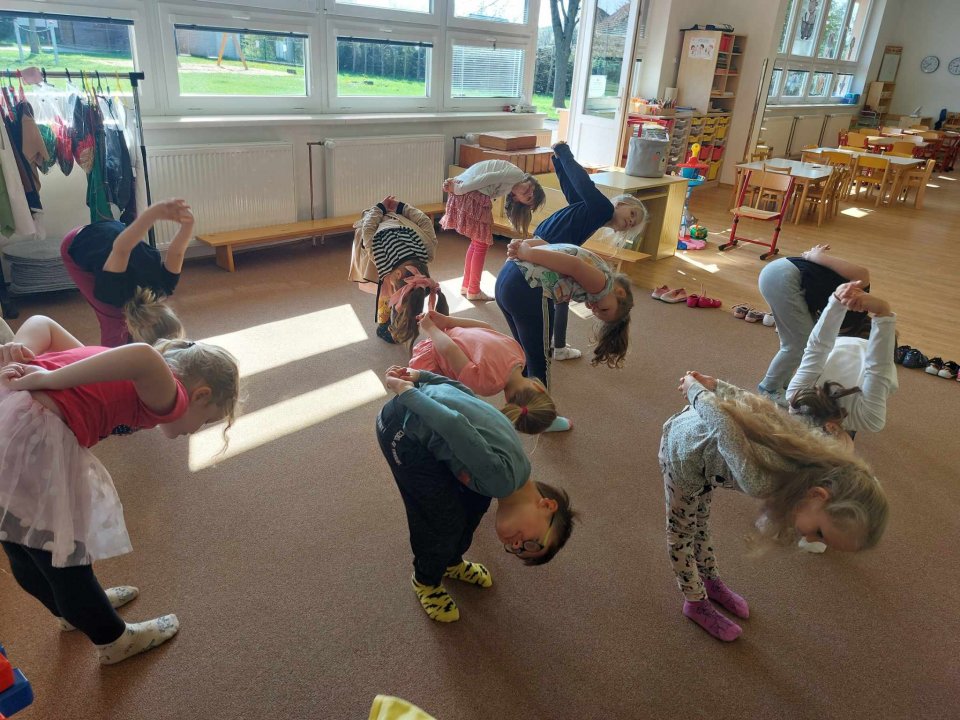25. 4. 2024 - rozehřátí (dopravní prostředky), cvičení na gym. míčích
