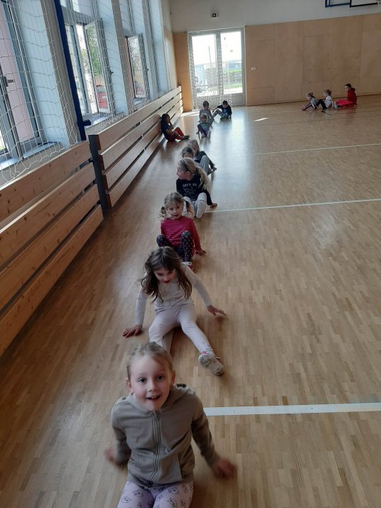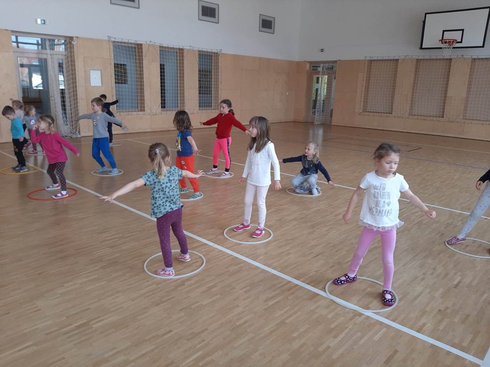 4.5. 2023 - zdravotní cviky, pohybové hry, opičí dráha 18.5. a 25.5. cvičení na zahradě MŠ11.5.2023 - zahřátí, rozcvička a hry s obručemi, pohybová hra "Myši"