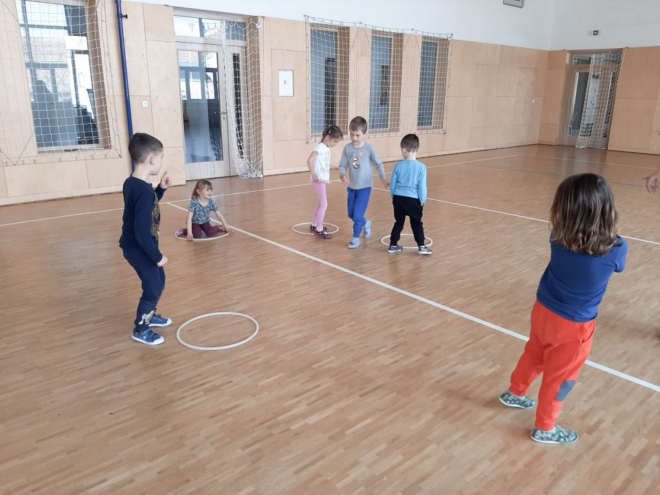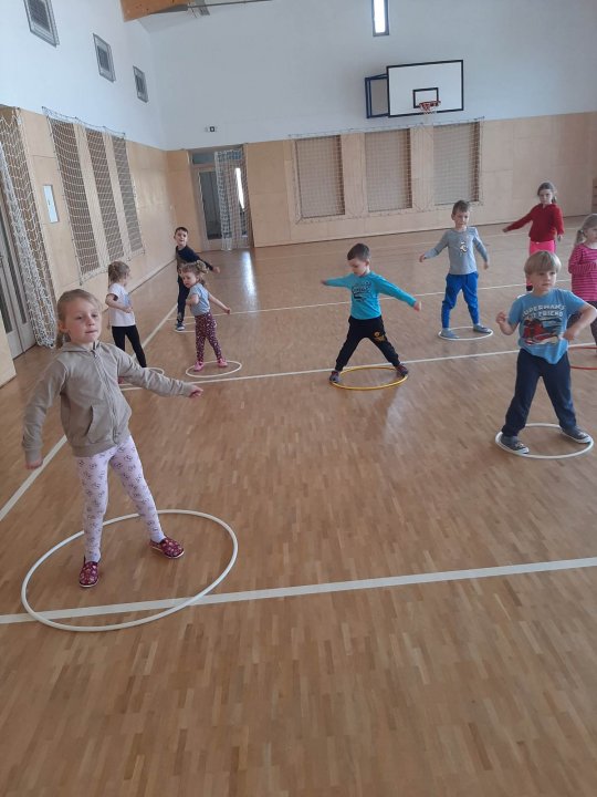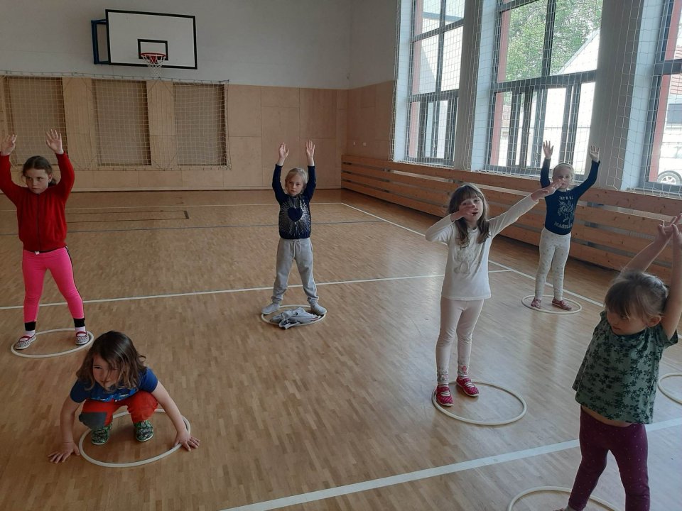 11.5.2023 - zahřátí, rozcvička a hry s obručemi, pohybová hra "Myši"