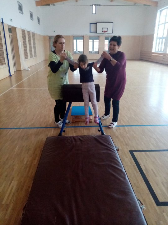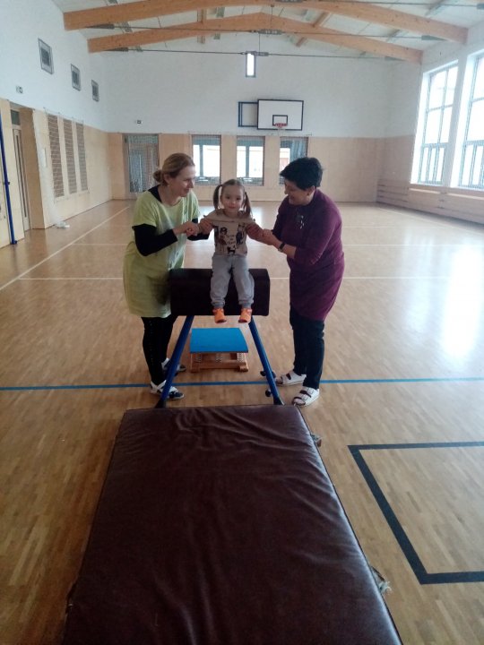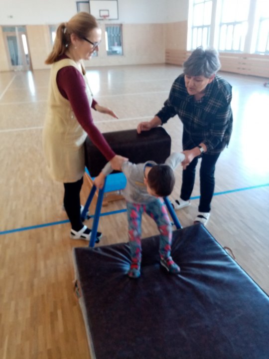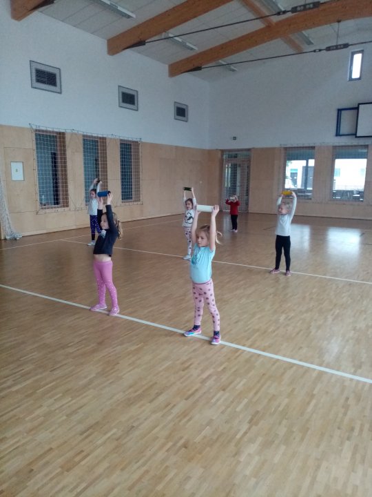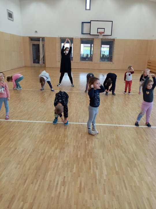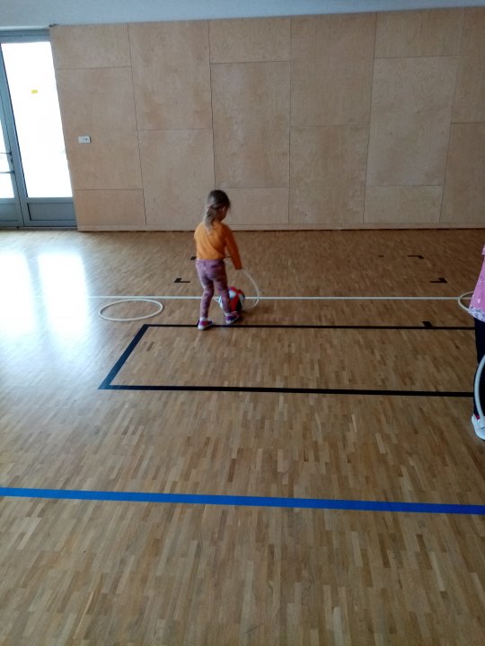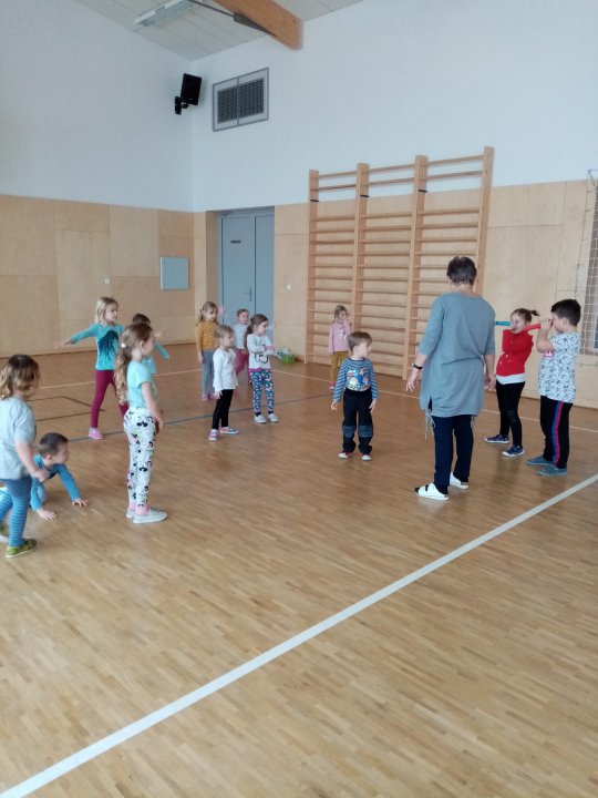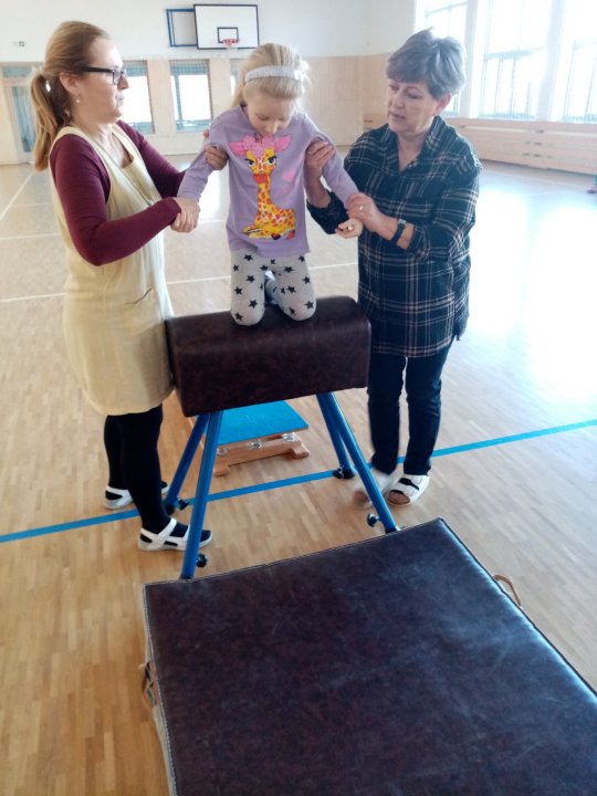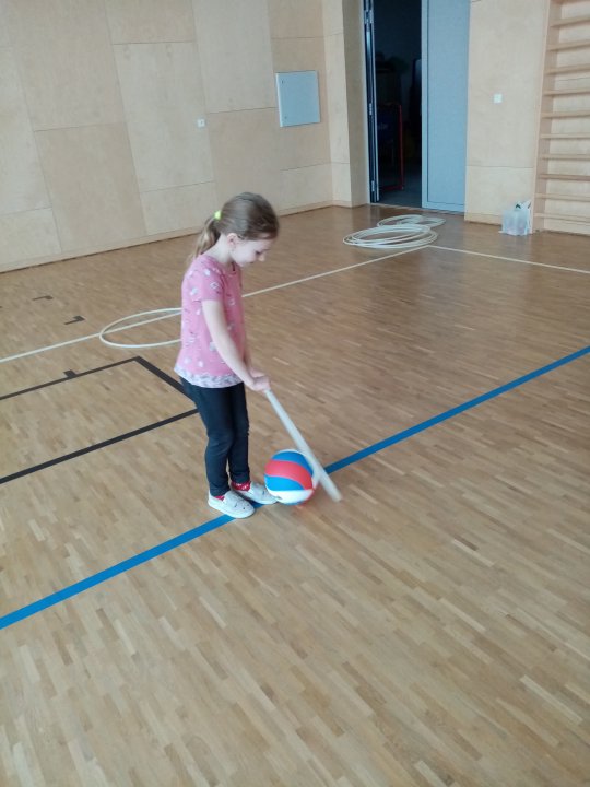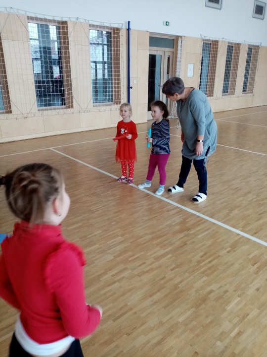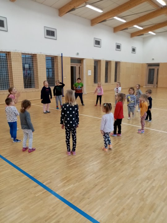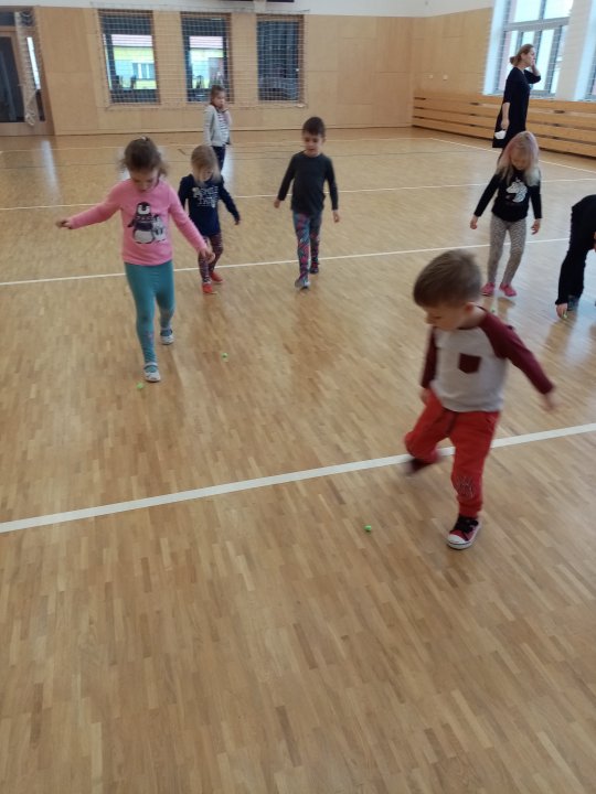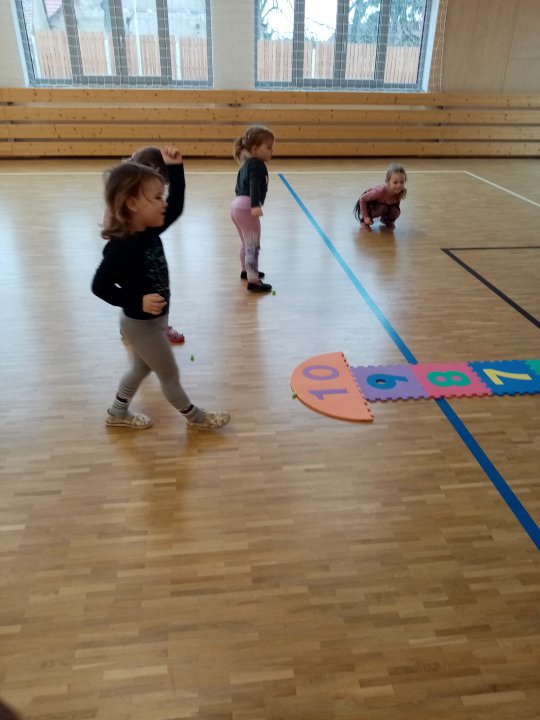 3. 1. 2022 - Cvičení s ježečkem Marečkem - kutálení balonu, hod vrchním obloukem, driblink apod.., nácvik přeskoku přes kozu.