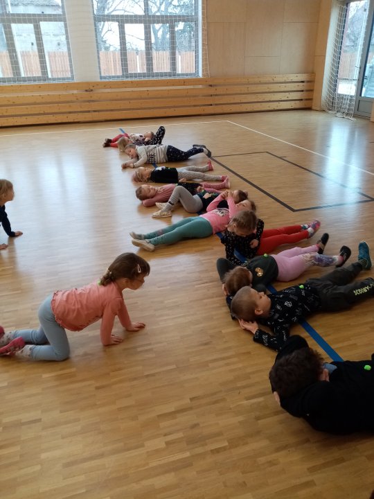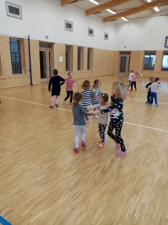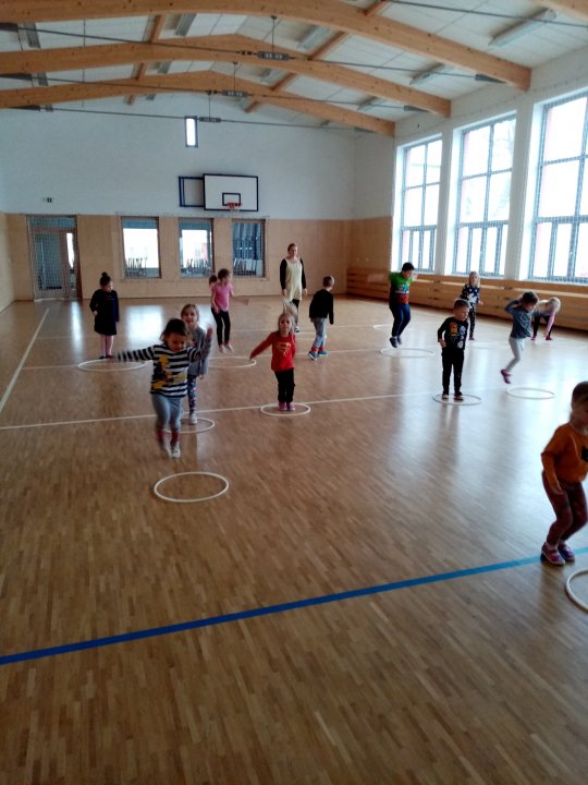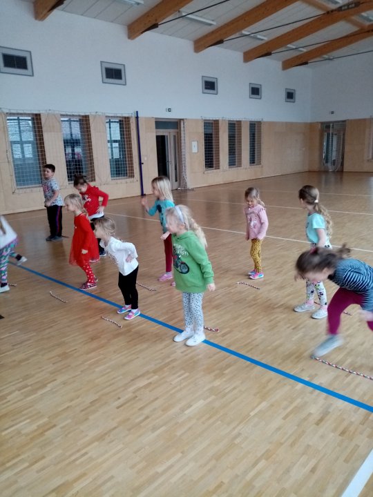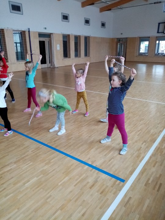 17. 1. 2022 - Cvičení s náčiním, zdolávání překážek, skok přes kozu, "skorovybíjená".
