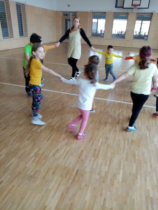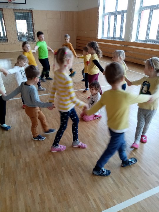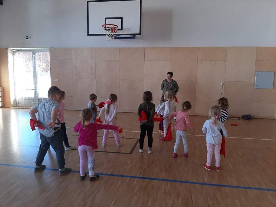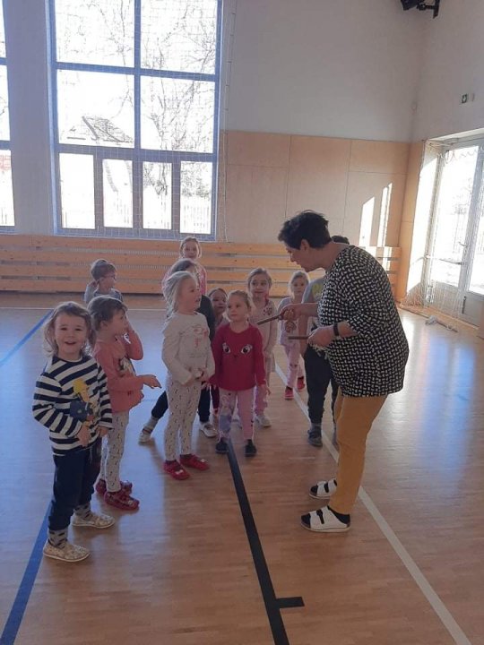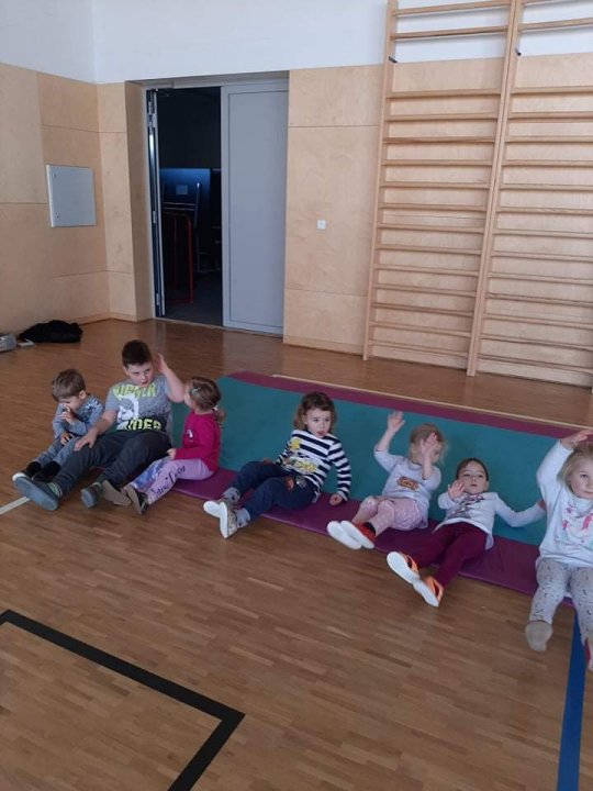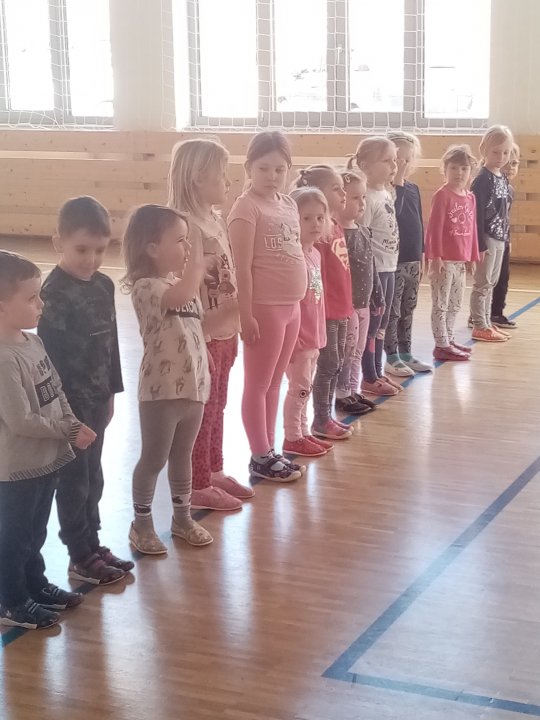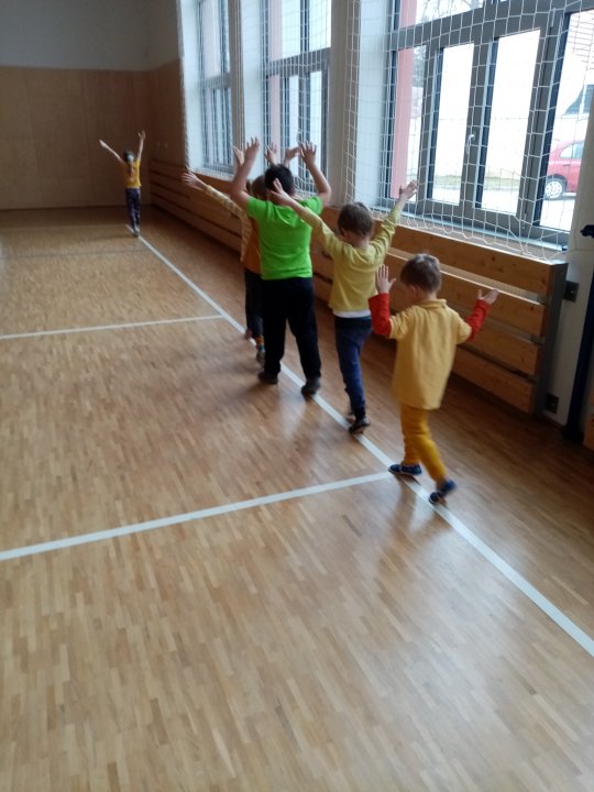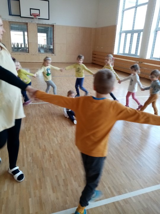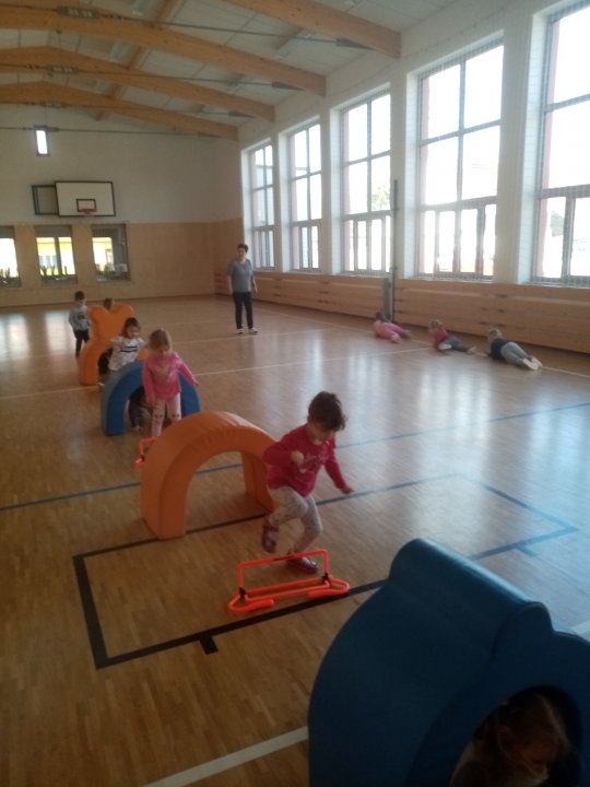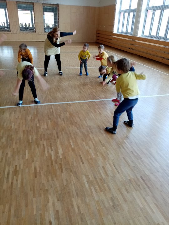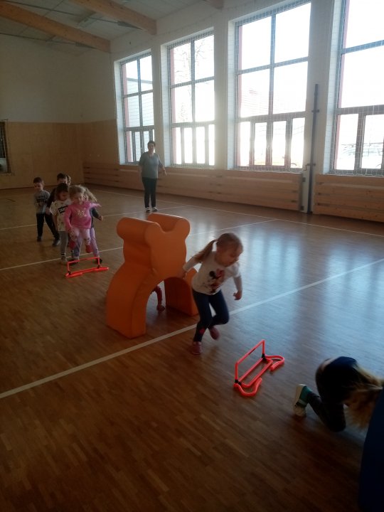 21. 2. 2022 - Přirozená cvičení, hudebně pohybové hry, mini překážková dráha, lezení po žebřinách a skluz po lavičce.