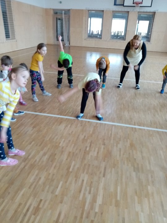 7. 2 . 2022 - Cvičení s šátky, válení sudů a kotouly.