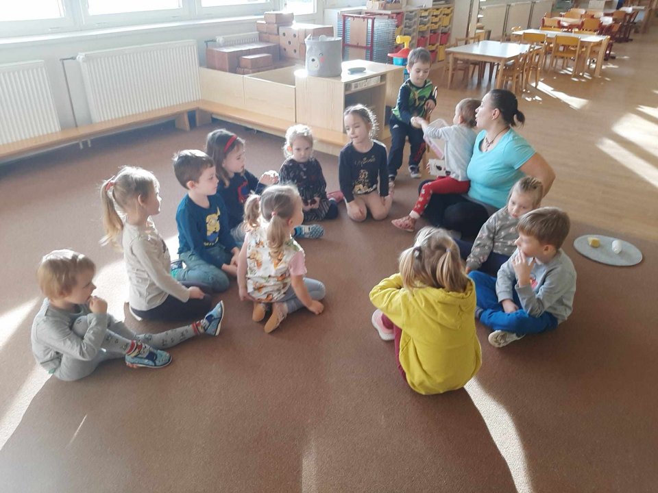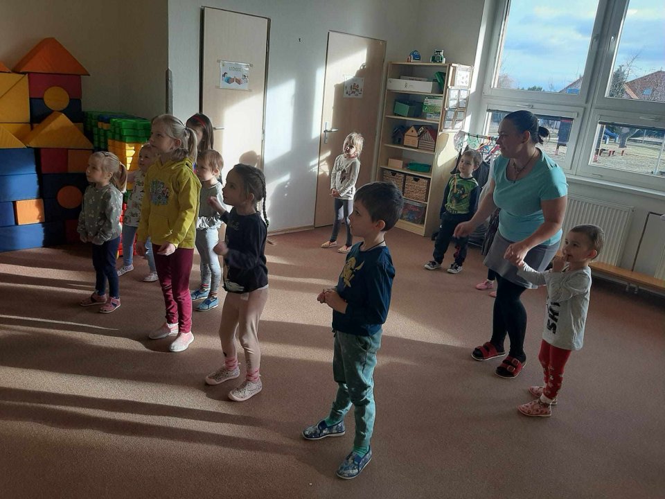 15. 2. - cvičení rovnováhy a koordinace, pohybové hry 22. 2. - cvičení s papírovými čepicemi 29. 2. - cvičení s molitanovými krychlemi (kvádry), pohyb. hra "Roční období", tanec "Jaro, léto,..."