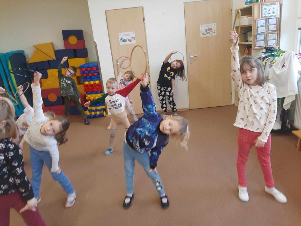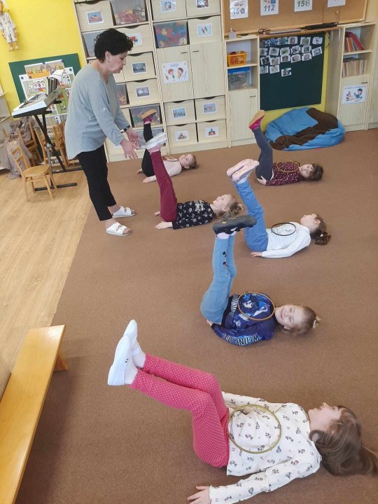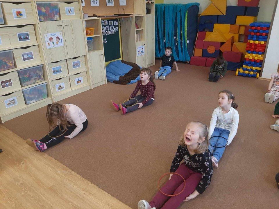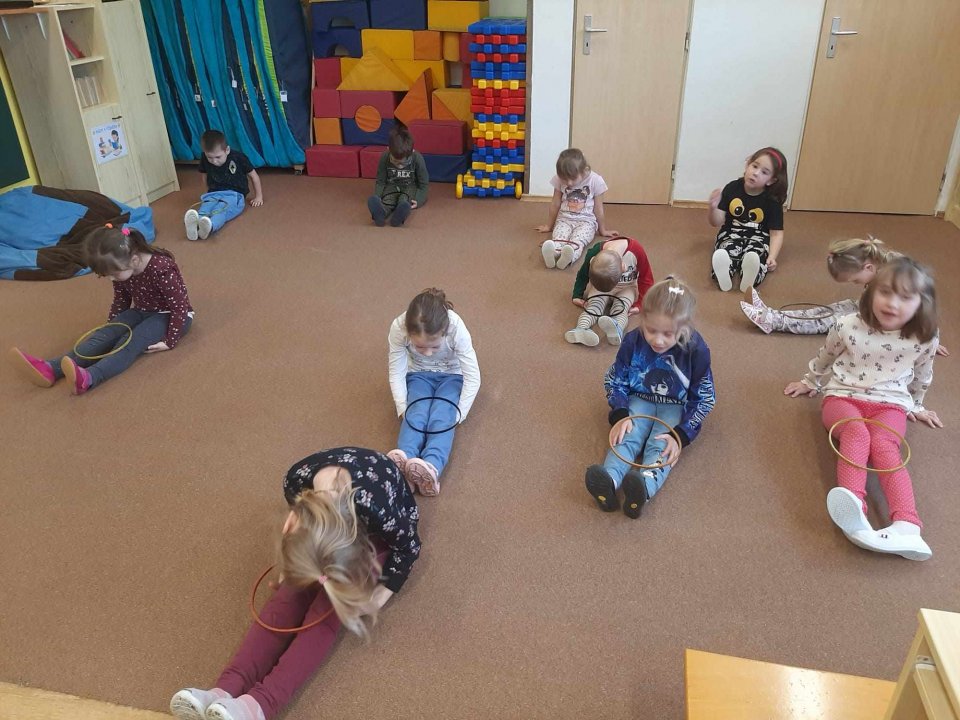 7. 3. - cvičení s kroužky, PH "Na auta" 14. 3. - hudebně pohybové hry "Na včelí úl" 21. 3. - cvičení s obručemi , "Travička zelená" 28. 3. - zdravotní cviky, překážková dráha, "Koulelo se vajíčko"