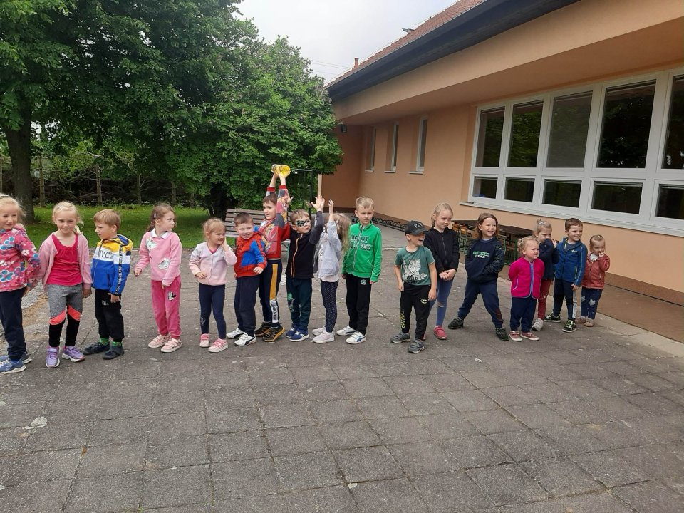 4.5. 2023 - zdravotní cviky, pohybové hry, opičí dráha 18.5. a 25.5. cvičení na zahradě MŠ 11.5.2023 - zahřátí, rozcvička a hry s obručemi, pohybová hra "Myši"