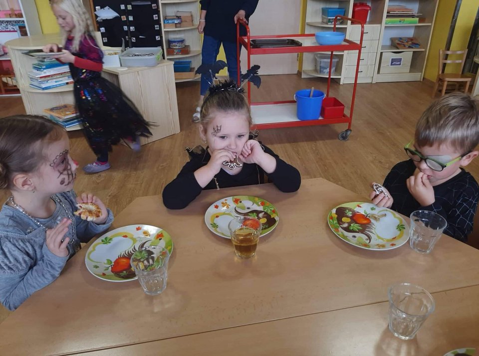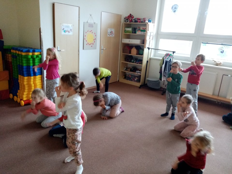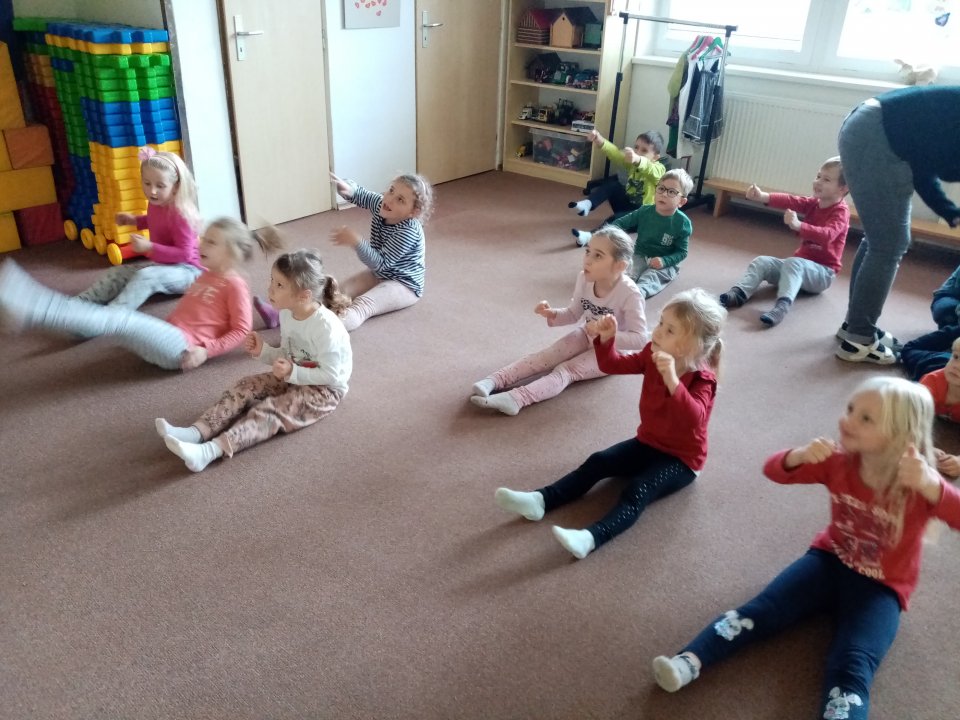 8. 11. 2022 - vycházka obcí, seznámení s legendou o Sv.Martinovi - tanec na židličkách, zpěv, grafomotorika, počítání do 6