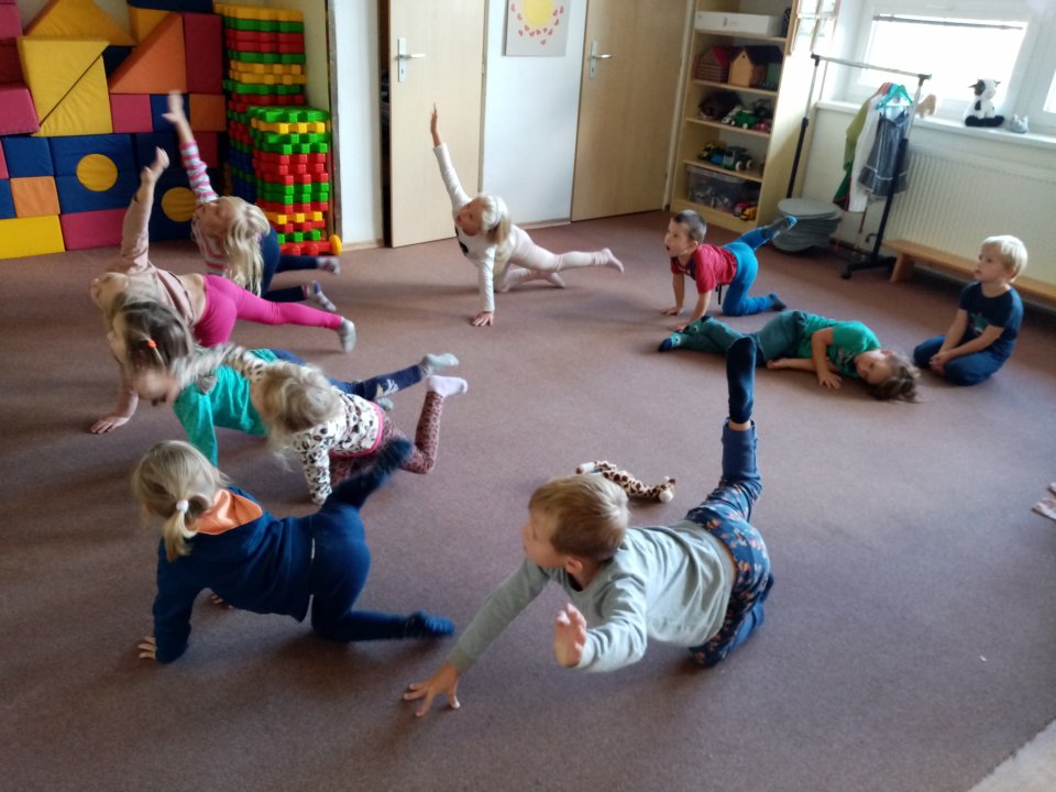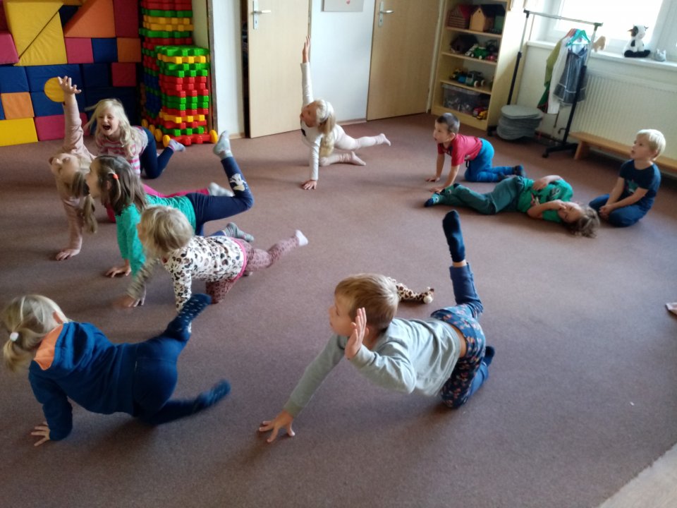 Vyzkoušeli jsme lva, tygra, žirafu, zebru i želvu. Zacvičili jsme si a dóóóst jsme se nasmáli.