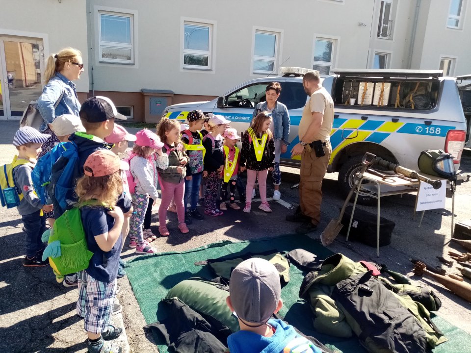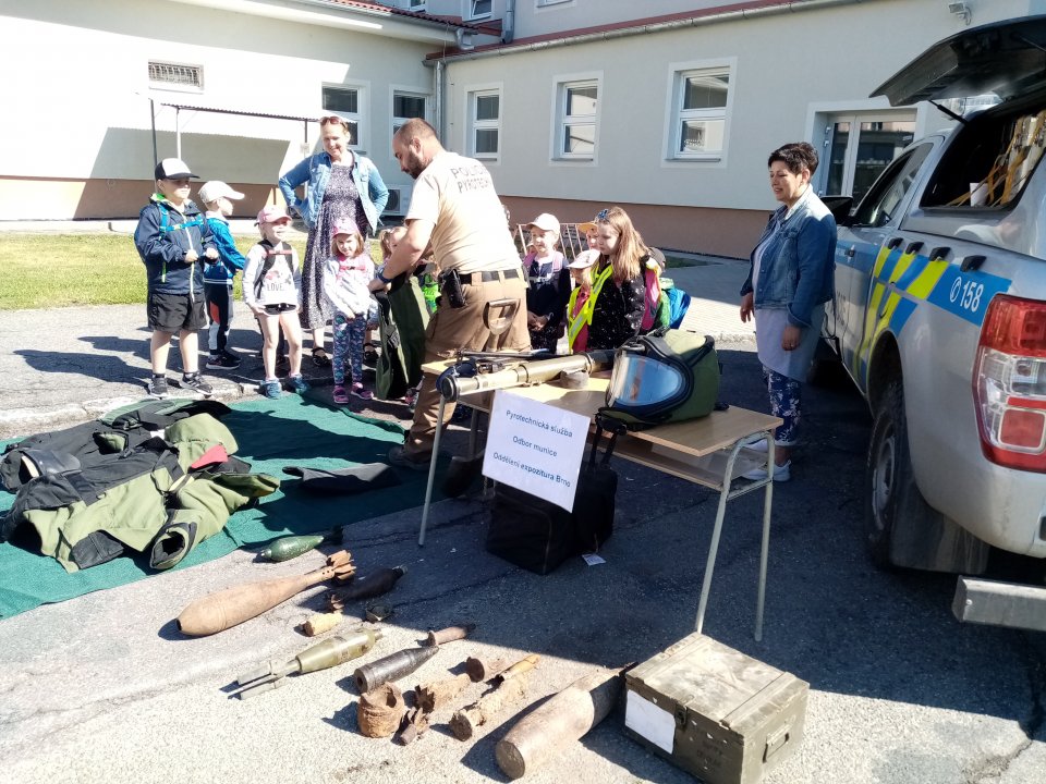 Prohlédli jsme si policejní techniku a výstroj. Viděli jsme policisty - na koních, psovody, potápěče i pyrotechniky.