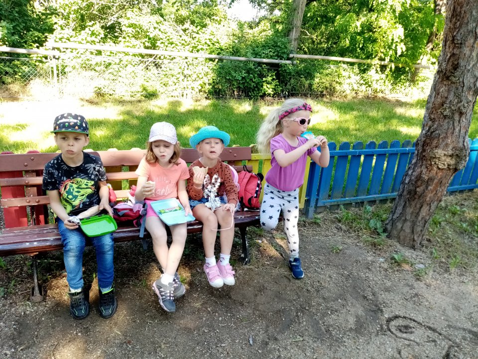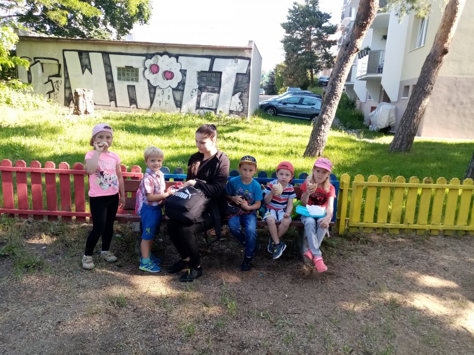 Procítili jsme vůni jara, vůni černého bezu i posečené louky. Nechali jsme se hladit a česat vánkem. Pohladili jsme si kůru stromů, ochutnali jsme lesní jahody a hleděli jsme do oblak........