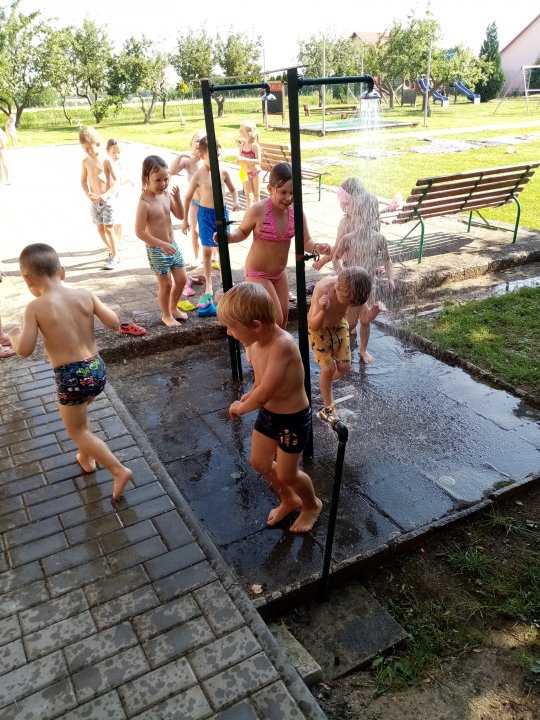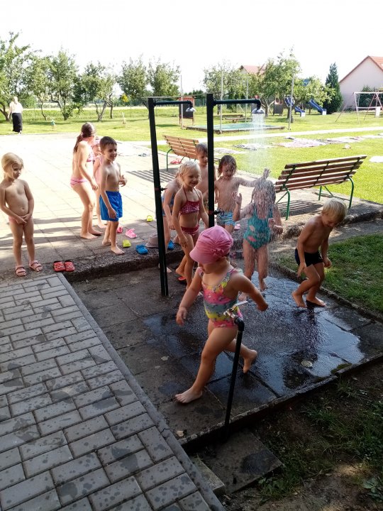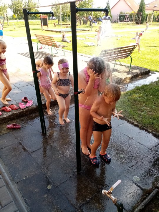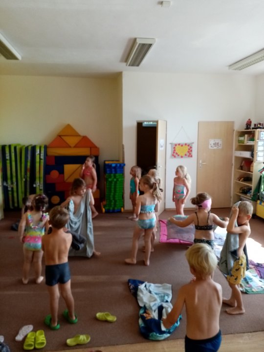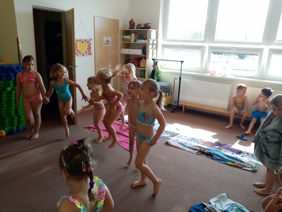 "Děti oblékneme si plavky." "Huráá, jééé", jekot - upřímné nadšení. Radujeme se.
