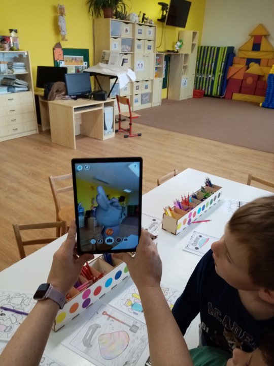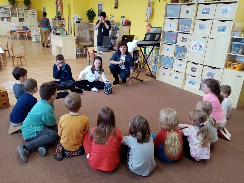 Děti se seznámily s robotem a vyzkoušely si jeho programování. Vymalovaly omalovánky, které "oživily " pomocí aplikace Quiver vision.
