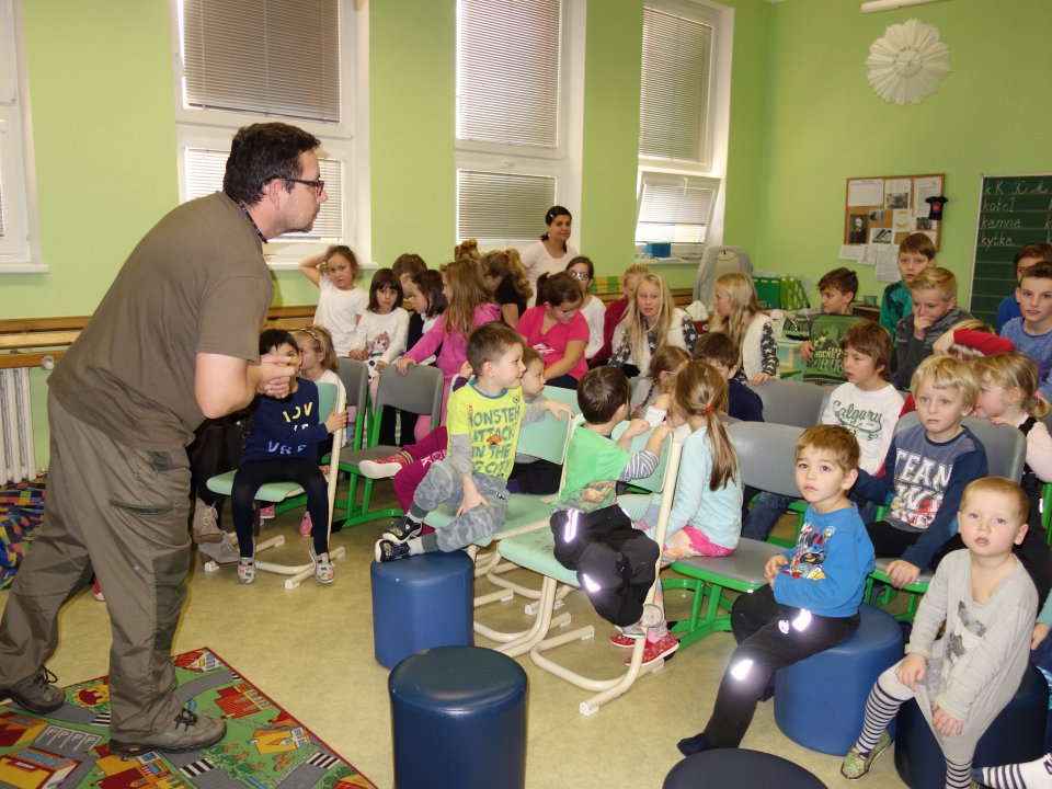 Dne 7.prosince k nám po čase opět zavítal na besedu ornitolog, cestovatel a především hajný pan Bartes, aby dětem MŠ i žákům ZŠ přiblížil život opeřenců.