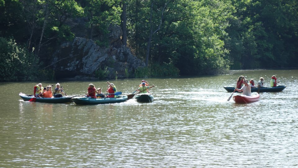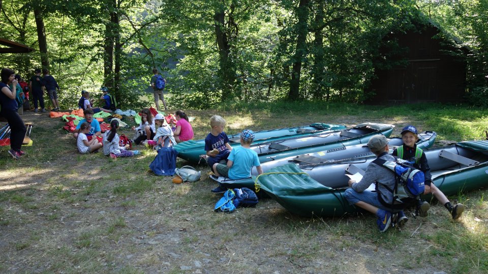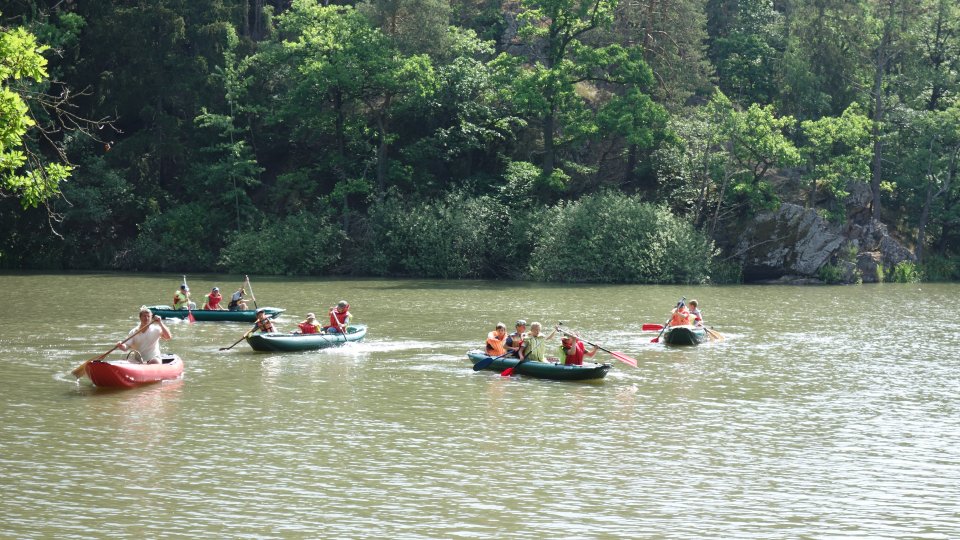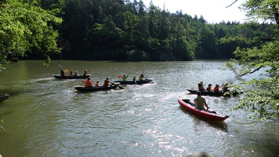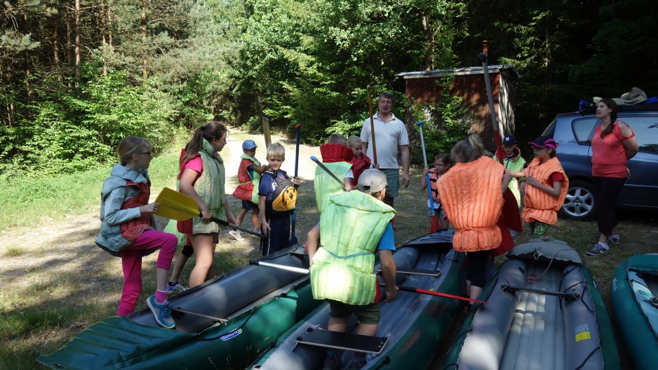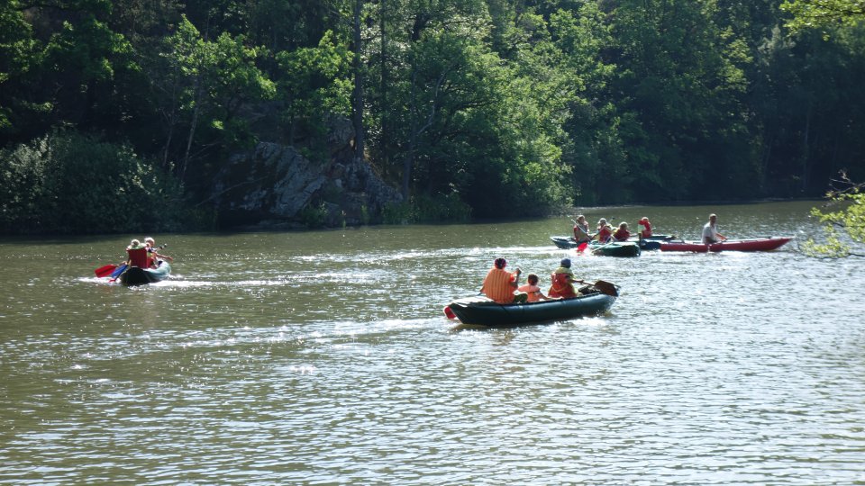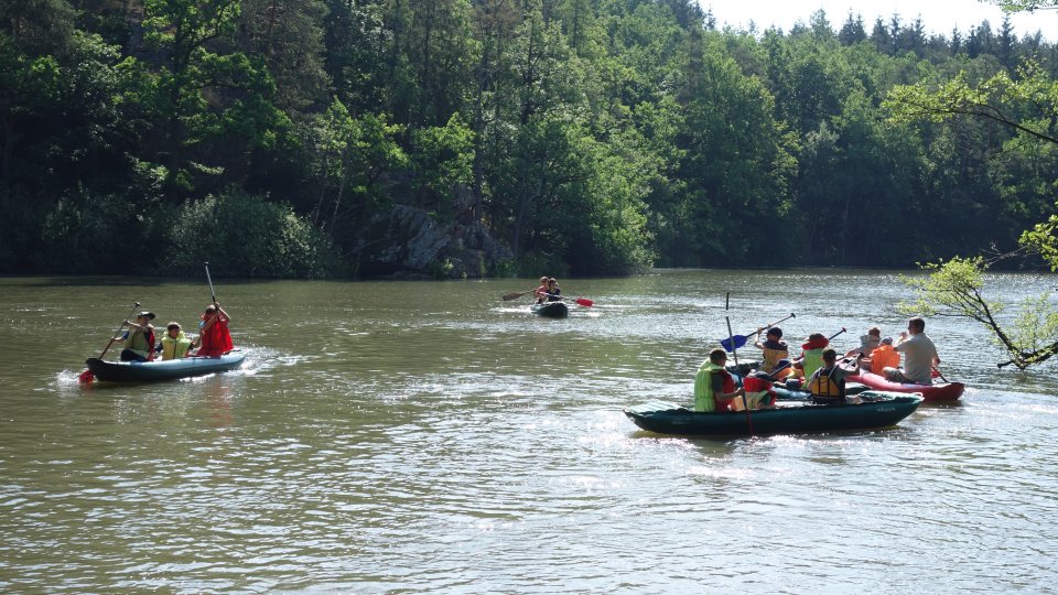 Ke Dni dětí byl dnes zorganizován malý putovní výlet vlakem a pěšky k rybníku Vlkov. Překvapením byla flotila pěti parádních nafukovacích kánoí, které pro nás sehnal a připravil pan Tomáš Vocilka, za což mu velice děkujeme. Součástí celé cesty bylo i plnění připravených soutěžních úkolů. Přidáváme pro představu pár foteček z celé akce