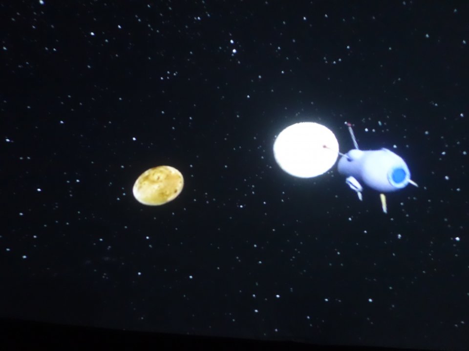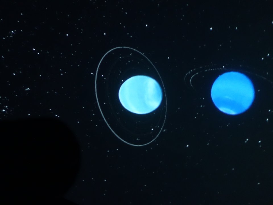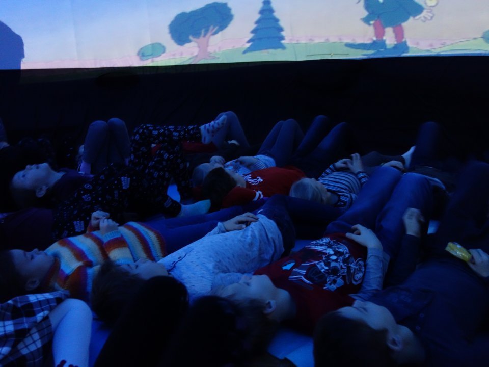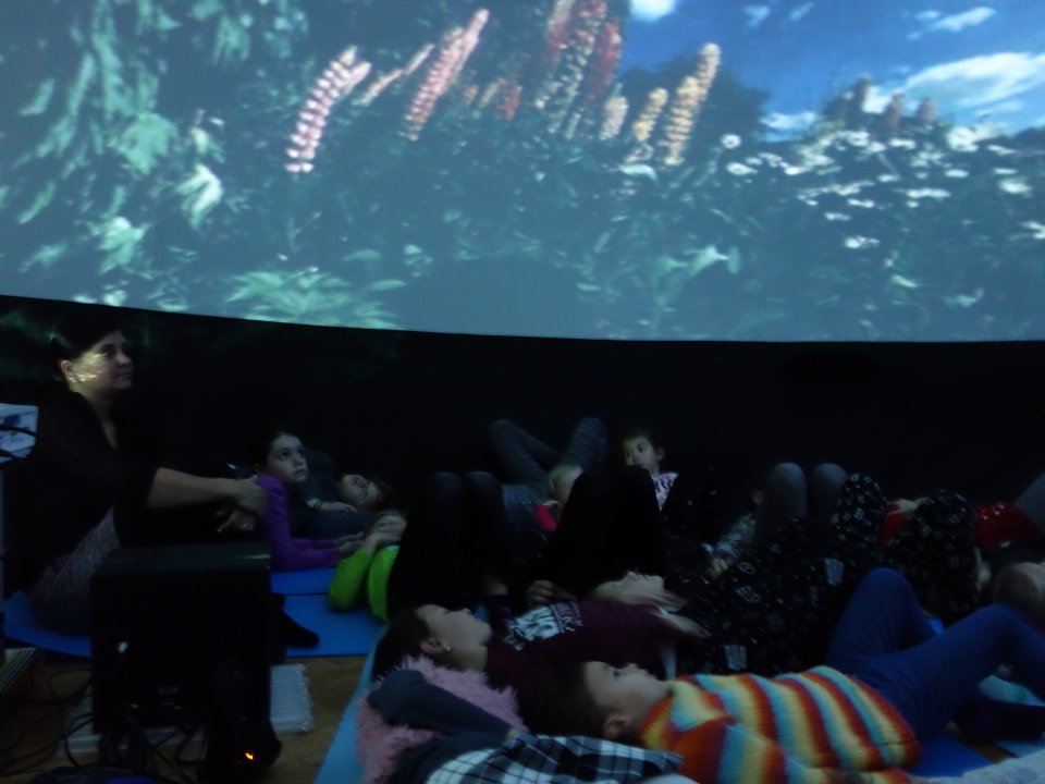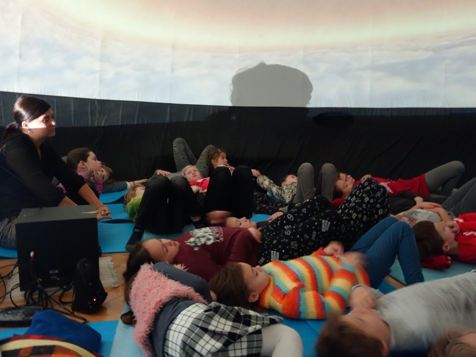 Dnes se naše tělocvična proměnila na planetárium. Podívali jsme se do vesmíru. Dozvěděli jsme se zajímavé informace o Slunci a dalších vesmírných tělesech. Přiblížili jsme se i k planetám Sluneční soustavy (k Merkuru, Venuši, Masu, Jupiteru a Saturnu). Ovšem k Neputu a Uranu jsme nedoletěli, protože by nám došlo palivo.