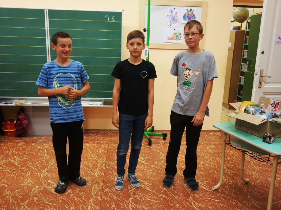 28. červen - předposlední den školního roku, byl dle jako stvořený k vyhlášení výsledků 19. školní olympiády a celoročního sběru použitého oleje. Takže jak to dopadlo? Výsledky jsou v pořadí fotografií. Nejprve vždy I. kategorie /1. - 3. ročník/ a následně II. kategorie /4. + 5. ročník/. Skoky přes švihadlo: 1. Bára, 2. Vladimír. 3. Lucie - 1. Jakub, 2. Anna, 3. Matyáš. Skok do…