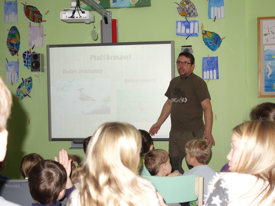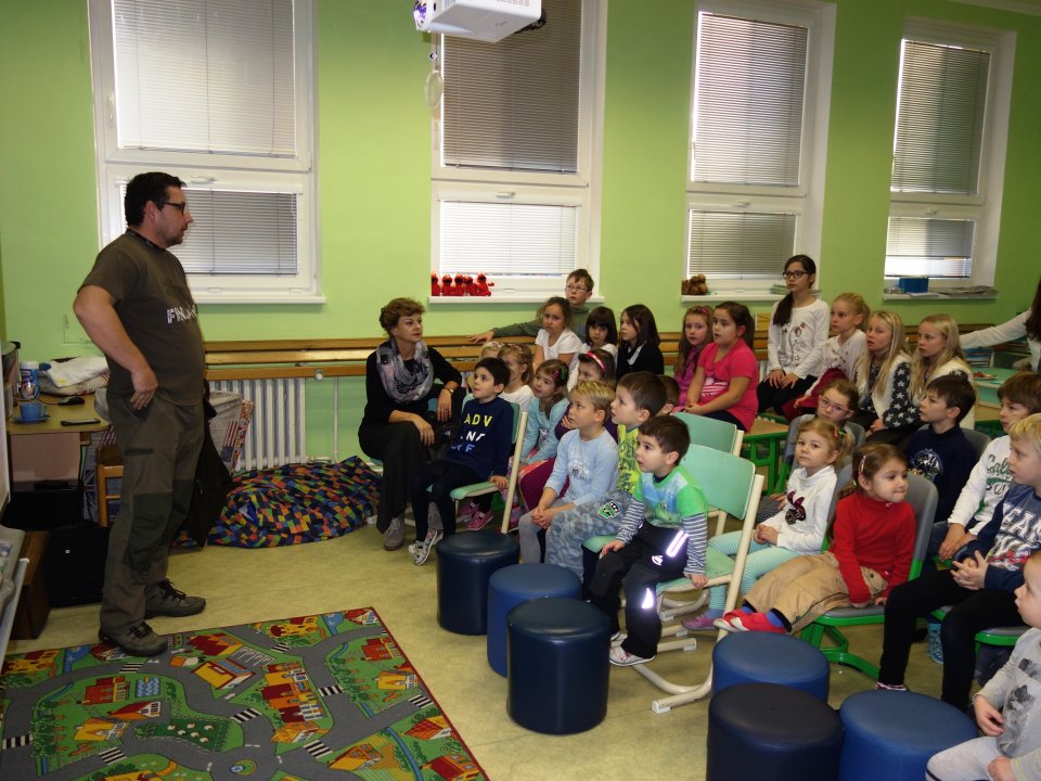Dne 7.prosince k nám po čase opět zavítal na besedu ornitolog, cestovatel a především hajný pan Bartes, aby dětem MŠ i žákům ZŠ přiblížil život opeřenců.