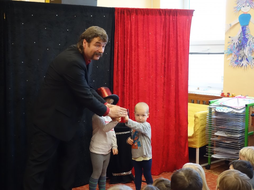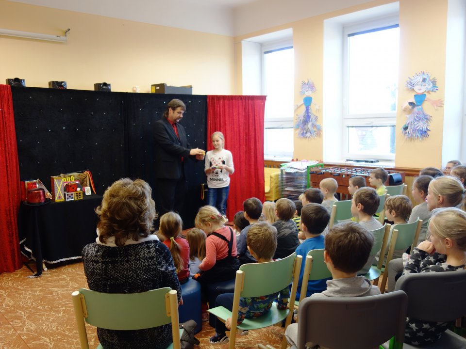 Předvánoční pondělí 18. prosince jsme dětem MŠ i žákům ZŠ zpestříli vystoupením výborného kouzelníka Vildomce s partnerkou. Výborně se bavily nejenom děti, ale i všechny paní učitelky.