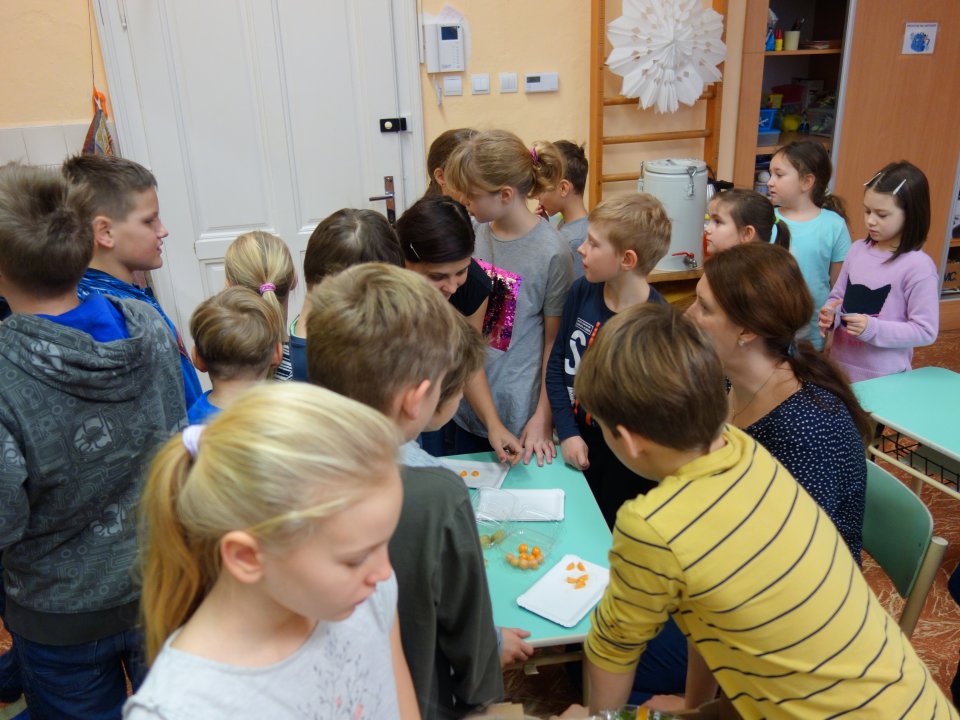 V pátek 19. ledna jsme mohli společně s dětmi ochutnat některé kusy exotického a prémiového ovoce a zeleniny. V bedýnce byl velký výběr. Ochutnali jsme blumy, pomelo, karambolu, mango, nashi (hruška), granny smit a red chief (jablka), mochyně, bílou ředkev nazývanou "mozzarella". Někteří získali nové chutě a všichni jsme si pochutnali.