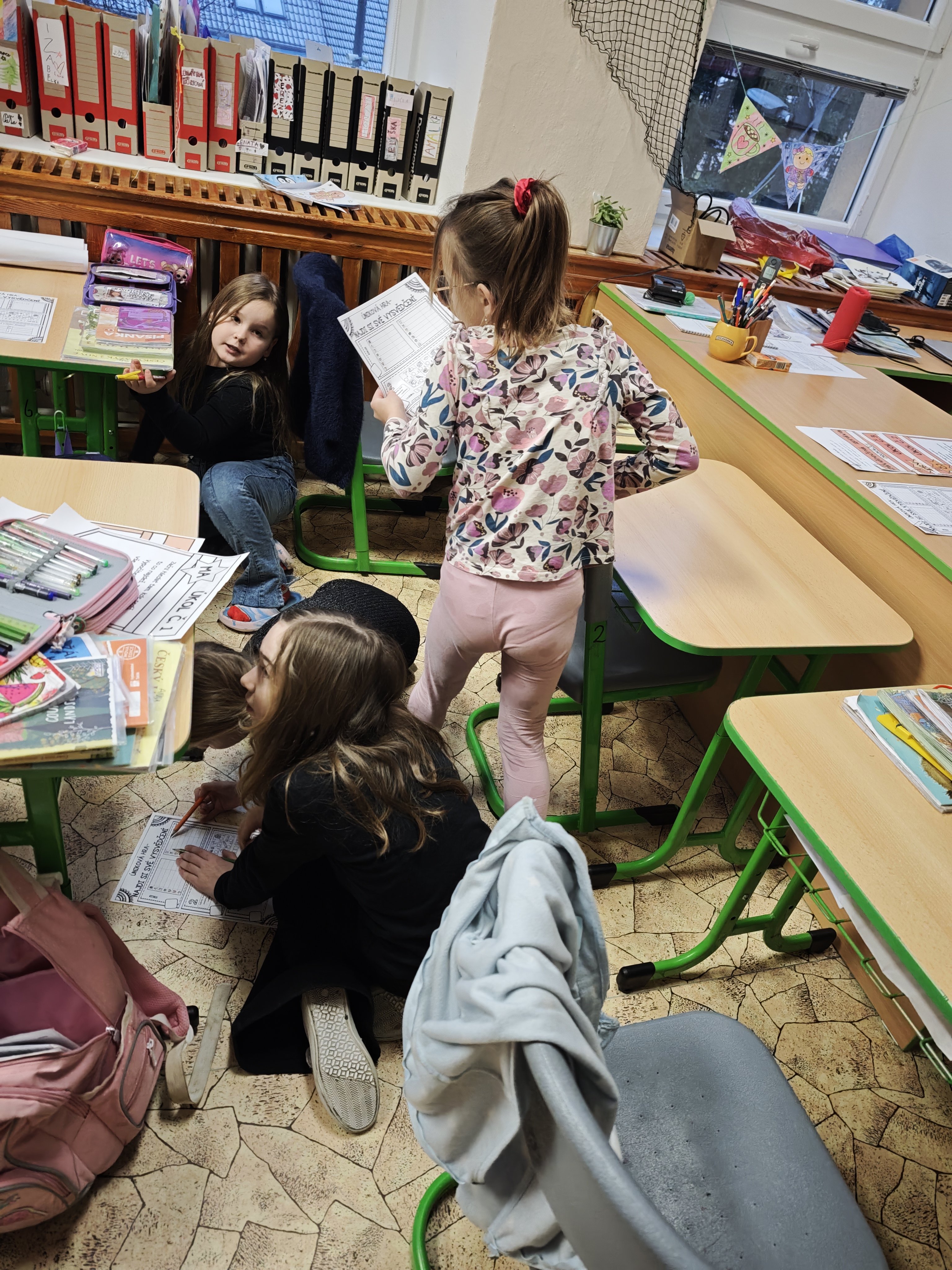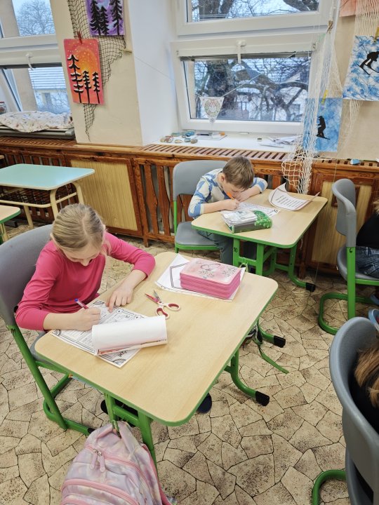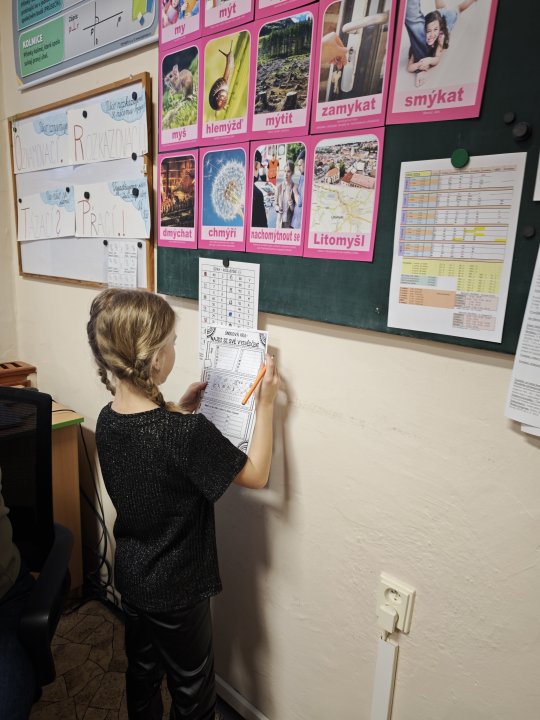 Děti si dnes vysvědčení musely sami najít po splnění několika úkolů u kterých jsme procvičili matematiku, český jazyk, vlastivědu i prvouku.