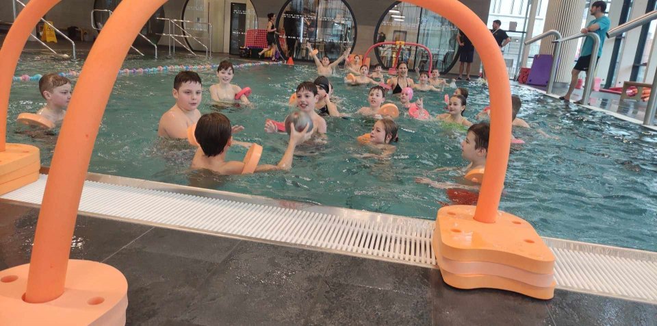 Děti jsou za půlkou plaveckého výcviku a tak je čekala zábavnější hodina a vodní pólo